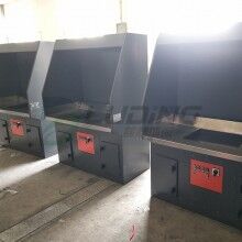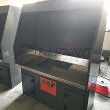 2、該打磨除塵工作臺(tái)采用我公司自己的收吸式除塵方式,且在后部抽風(fēng)口和臺(tái)面抽風(fēng)口都安裝有風(fēng)閥??梢愿鶕?jù)工件的大小或打磨位置的不同關(guān)閉相應(yīng)的風(fēng)閥.以提高其它部位的風(fēng)量來(lái)達(dá)到提高除塵效果。該種方式很大地節(jié)省了用風(fēng)量.降低了運(yùn)行費(fèi)用。